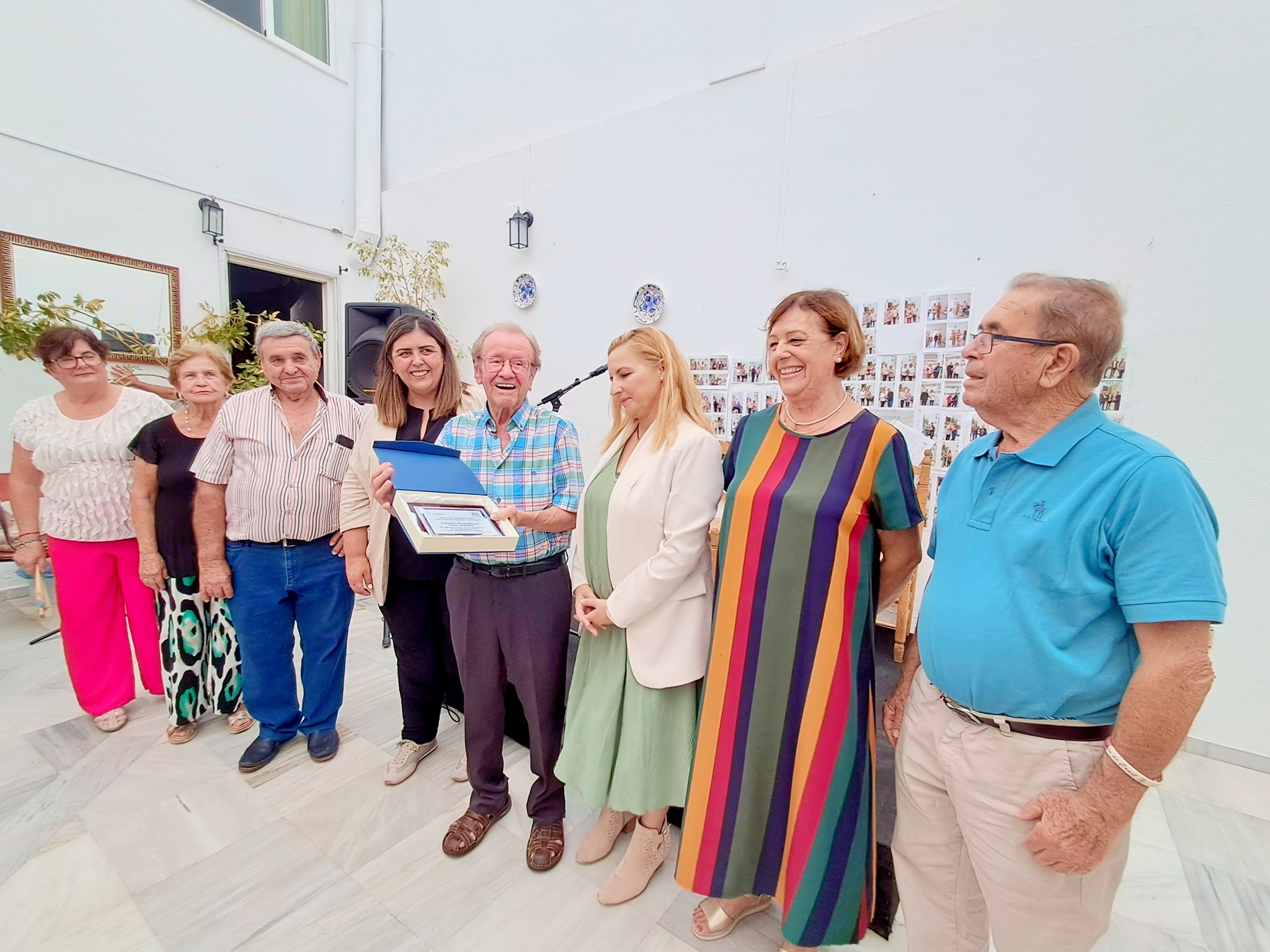 La alcaldesa, Inmaculada Sánchez, junto a la delegada municipal del Mayor, Mercedes del Valle, le han hecho entrega de una placa conmemorativa, que ha recogido con gran emoción y sorpresa.