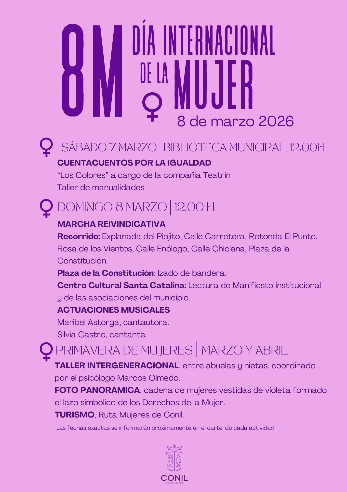 CONIL CONMEMORA EL DÍA INTERNACIONAL DE LA MUJER CON UNA MARCHA REIVINDICATIVA Y UNA PROGRAMACIÓN ESPECIAL