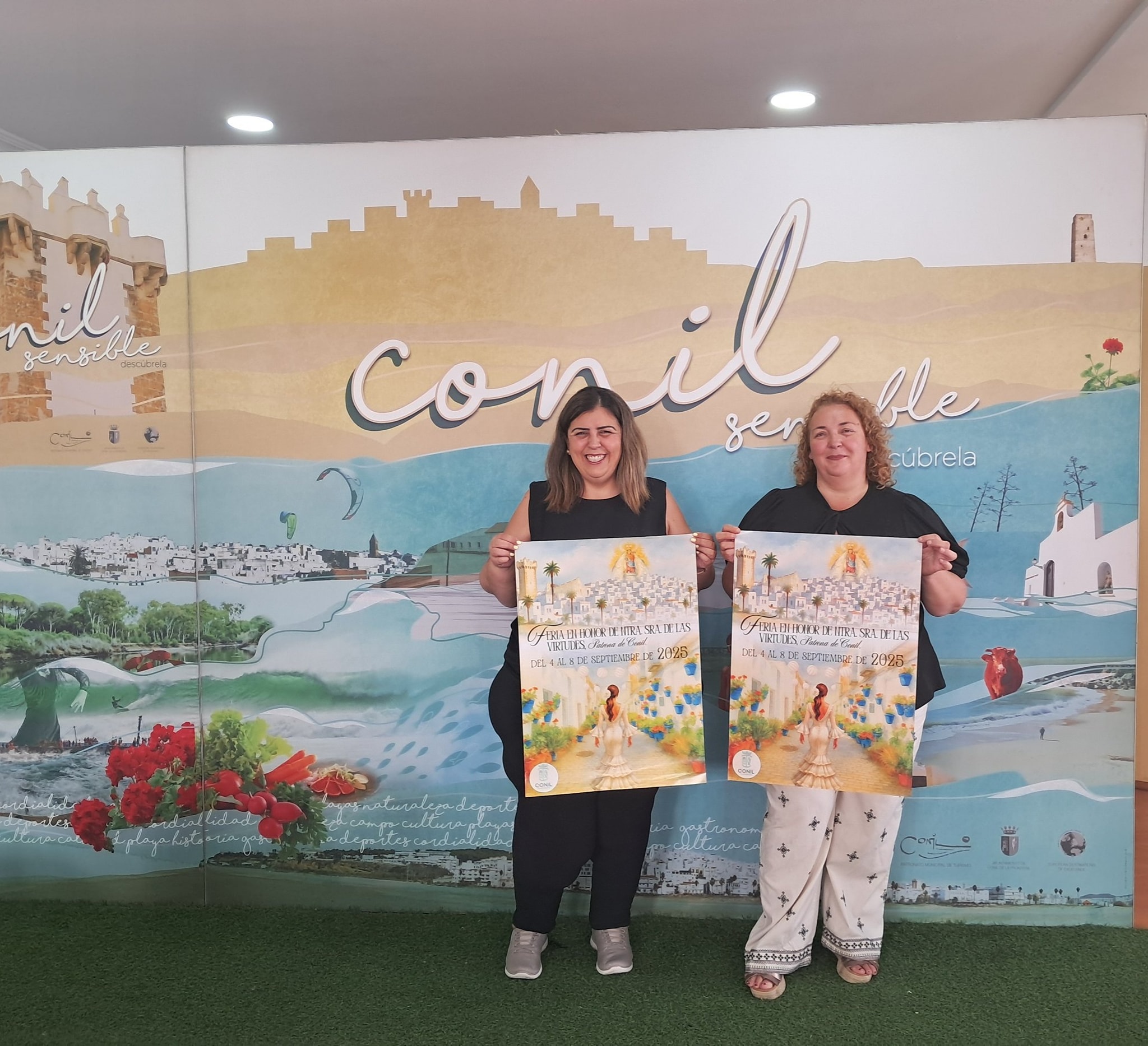La alcaldesa, Inmaculada Sánchez, junto a la delegada municipal de Fiestas, Catalina Almazo, han presentado la programación especial de la feria en honor a las Nuestras Señora de las Virtudes, que se celebrará en Conil del 4 al 8 de septiembre.